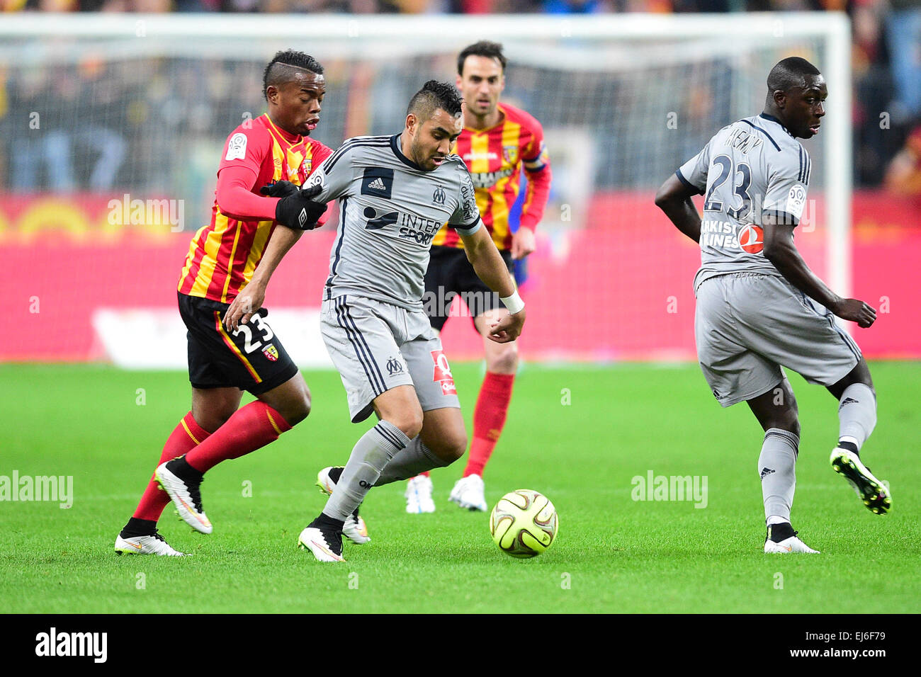 Lens France 22nd Mar 2015 French League 1 Football Fc Lens Versus Marseille Wylan Cyprien Lens Challenges With Dimitri Payet Om Credit Action Plus Sports Alamy Live News Stock Photo Alamy